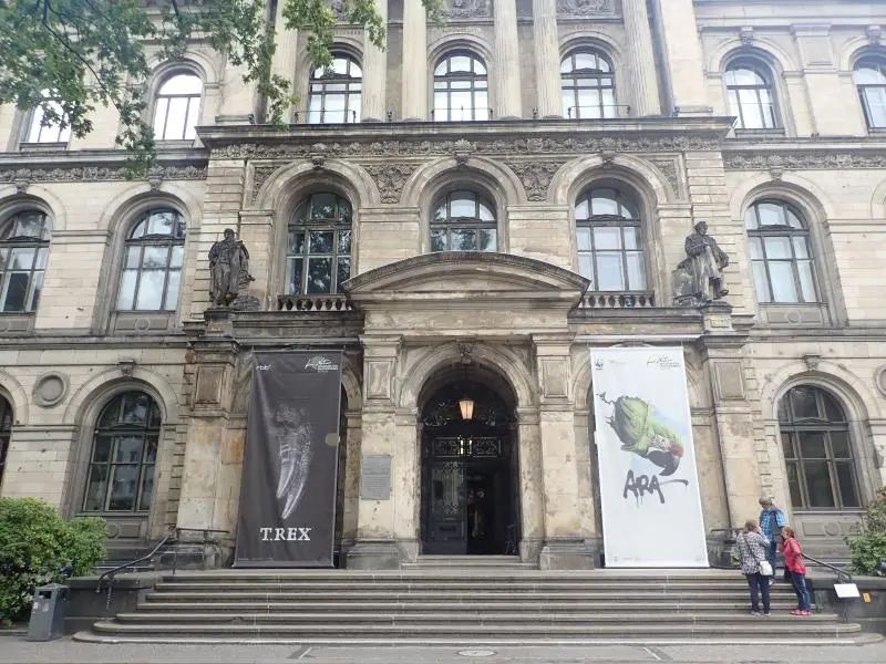 走出柏林中央火车站(Berlin Hauptbahnhof)的北门,眼前是一条名为Invalidenstraße的宽阔马路,沿着这条路朝东北方向步行约1公里,就来到了位于Invalidenstraße大街43号的柏林自然博物馆。这座始建于1810年的三层建筑古朴而典雅,最初属于柏林洪堡大学的一部分,自1889年12月2日起成为了独立的柏林自然博物馆所在地。