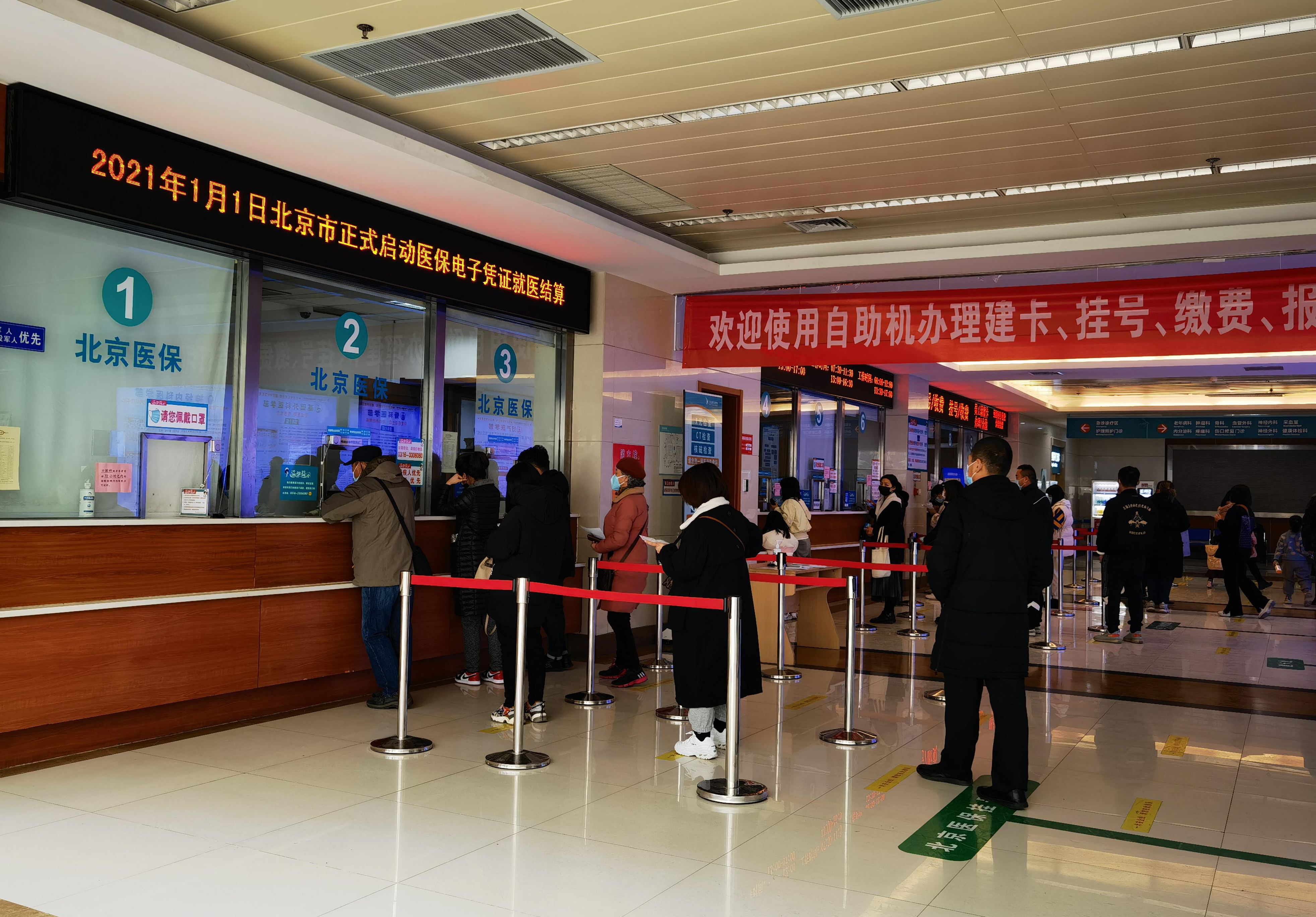 这是2021年2月22日拍摄的燕达医院北京医保挂号收费窗口。患者可使用北京社保卡办理挂号和直接结算业务。廊坊市委宣传部供图