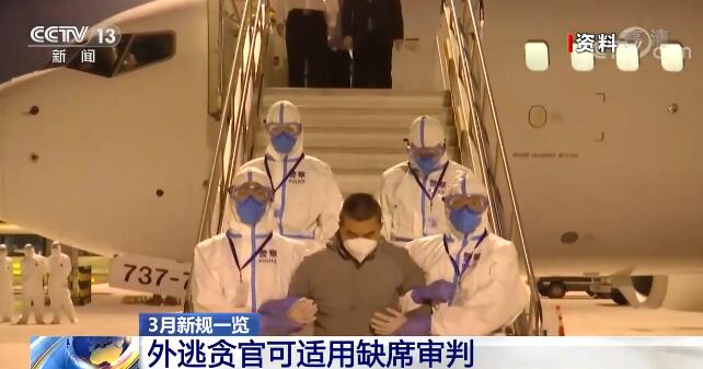 自3月1日起,《最高人民法院关于适用<中华人民共和国刑事诉讼法>的解释》施行,《解释》设专章对缺席审判程序作出细化。其中规定对于贪污贿赂犯罪案件,以及需要及时进行审判,经最高人民检察院核准的严重危害国家安全犯罪、恐怖活动犯罪案件,犯罪嫌疑人、被告人在境外的,可以适用缺席审判程序依法作出判决,并对违法所得及其他涉案财产作出处理,决不让腐败分子和其他犯罪分子逍遥法外、逃避惩罚。
