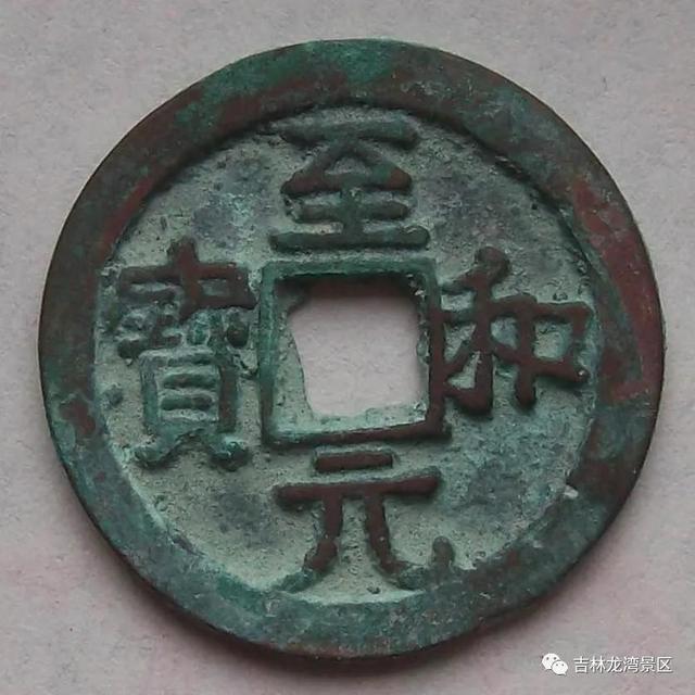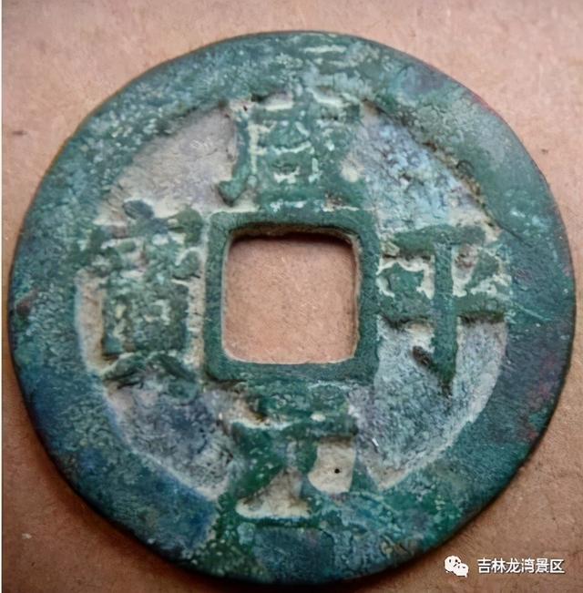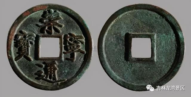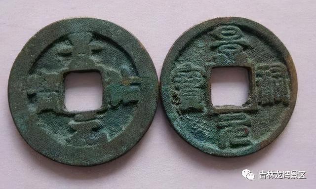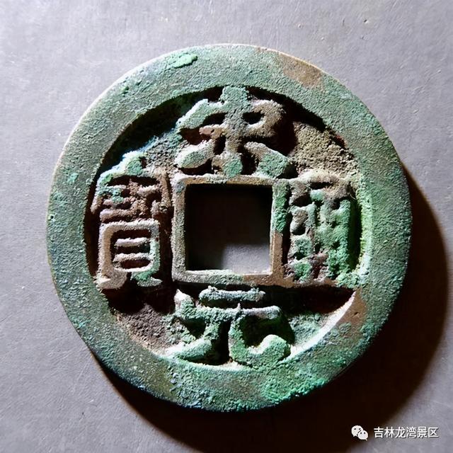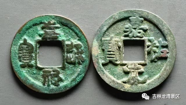 1984年春,位于吉林龙湾群国家级自然保护区内的金川乡板庙子村先后两次出土大批古代铜钱。两次出土均为陶瓮所藏,共计四百余斤,一万二千三百余枚。其中以汉“五铢”钱为最早,金代的“大定通宝”为最晚,唐“开元通宝”也较多,最多的为北宋钱,共计33个年号,66种钱。现收藏于吉林省博物院。
