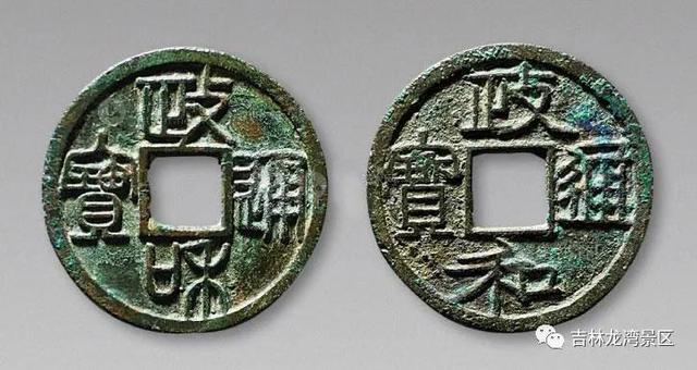 “政和通宝”:宋徽宗政和元年(公元1111年)铸,钱文分篆、楷两种,对读,钱径分3.1和2.5厘米两种。