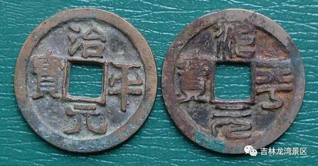 “治平元宝":宋英宗治平元年(公元1064)铸。钱文可分篆、楷两种,皆顺读,钱径2.5厘米。