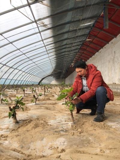 春回大地,万物复苏。2月27日,走进新疆生产建设兵团第十四师昆玉市皮山农场昆珏无花果种植产业园的温室大棚,无花果苗木已经高过膝盖,叶子绿意盎然,一名妇女正在给无花果苗木进行抹芽。她双手动作娴熟,心无旁骛,不一会就完成了一个棚的抹芽工作。她叫布佐热·麦提外力,在这个无花果产业园工作已经两年了。
