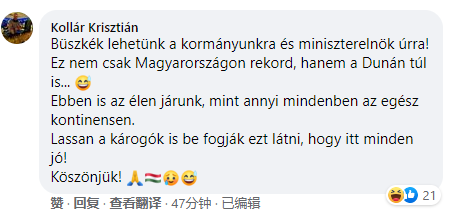 网民科拉尔表示:为我们的政府和总理感到骄傲!这不仅是匈牙利的纪录,也是多瑙河以外的纪录。在整个欧洲大陆,我们国家也在很多事情上领先。