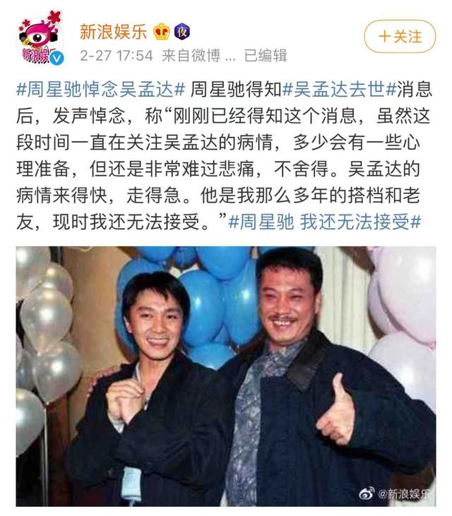 周星驰得知吴孟达去世消息后也第一时间做出了回应: