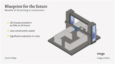 图为 3D打印建筑的未来蓝图。图片来源:Mega.online
