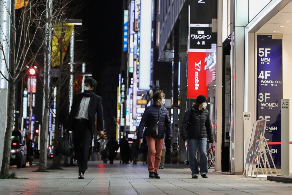 2月2日,日本东京银座的商铺提前结束营业,行人明显减少。(新华社记者杜潇逸摄)