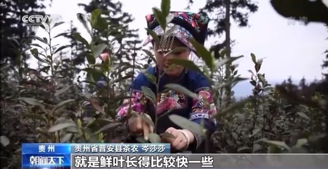 贵州省普安县茶农 岑莎莎:这两天的话,鲜叶长得比较快一些,茶叶我们(每天)可以采五、六斤。