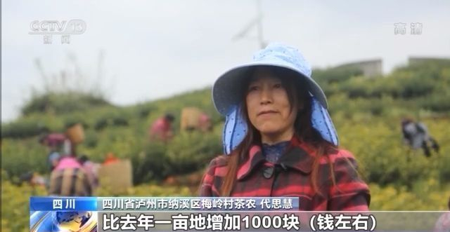 四川省泸州市纳溪区梅岭村茶农 代思慧:我家种了4亩地,4亩地(全年收入)算下来有3万多元,比去年一亩地增加1000元(左右) 。