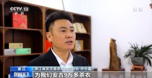 浙江省安吉县茶叶协会会长 许万富:今年春茶的长势好,产值预计能接近30亿元,可以为全县9万茶农人均净增收超过12000元。