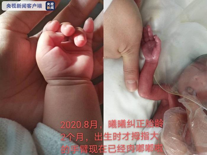 2020年广西贺州女孩柳岑曦的出生牵动了不少人的心,因为早产,小岑曦刚出生时只有900克,手臂只有拇指般大小。在医务人员精心照料下去年5月她顺利出院,如今这袖珍的“拇指姑娘”已经长成了一个可爱小萌妹啦!