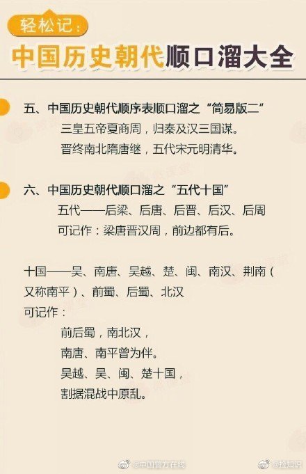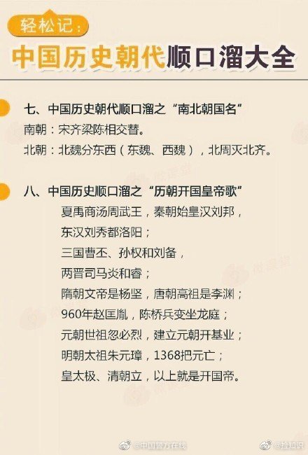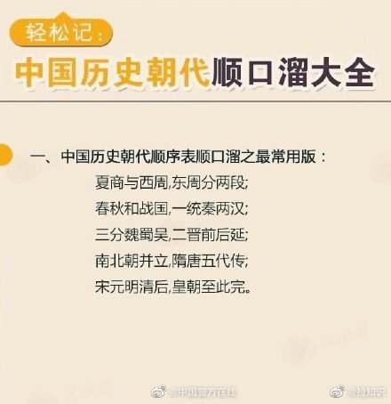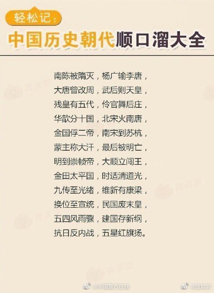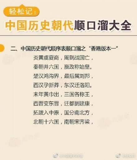 涨知识!中国历史朝代顺口溜大全,转存!!!