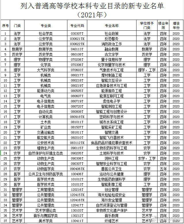 【37个新专业列入普通高等学校本科专业目录】教育部1日公布2020年度普通高等学校本科专业备案和审批结果的通知。根据高等学校专业设置与教学指导委员会评议结果,确定了同意设置的国家控制布点专业和尚未列入专业目录的新专业名单,融合教育、古文字学、量子信息科学、能源互联网工程、智慧交通、智能飞行器技术等37个新专业列入普通高等学校本科专业目录。(记者王思北)