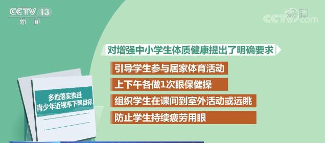 针对目前在线学习的问题,七个省份也提出不同的指导意见,学生在居家学习时也要预防近视,要求普及护眼知识,指导学生居家学习生活时科学用眼。同时,还对增强中小学生体质健康提出了明确要求,引导学生参与居家体育活动,上下午各做1次眼保健操,组织学生在课间到室外活动或远眺,防止学生持续疲劳用眼。