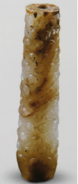 玉勒(lē,音乐)子,又称“蜡子”,属于装饰用玉。通常为圆柱形,中间打通天孔,是悬挂于胸前或腰间的玉饰,可以单独佩挂,也可以与其他玉饰组合佩挂。