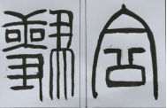 其次,印章上雕刻的文字一定是反的,这样盖出来才是正的。为了便于识别,笔者把玉琀上的文字摹写出来(图5),发现并不是反刻的,而是正刻的。特别是“欢”字,《古代汉语字典》注明,与简化字“欢”对应的有三个异形繁体字,即“歡”、“懽”、“驩”。《辞源》注释为,①马名。②欢乐,欢心。通“歡”。《辞海》注释更明确,是“欢”的异体字。玉琀上的欢字,正是这个异形繁体字的“驩”字,它是由“馬”与“雚(guàn,音灌)”两部分组成。在古代篆字书写中,有时左右两边的组成部分是可以对调的,比如这个“驩”字的“馬”旁,即可以写到左边,也可以写到右边,均为正刻。因此它不可能是玉印。