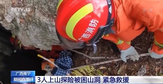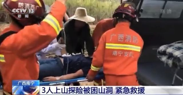 近日(2月24日),在广西南宁上林县三里镇枯结村,3名游客上山探险,不慎被困在一个山洞内,其中1人摔伤。救援人员接警后赶往施救。