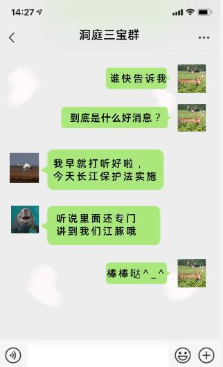 天上飞的候鸟、地上跑的麋鹿、水里游的江豚——“洞庭三宝”在群里按捺不住兴奋,一下子“炸开了锅”。