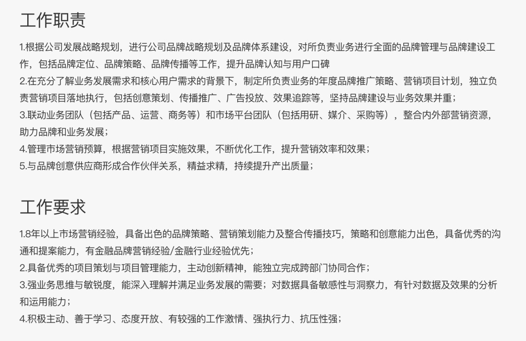 比如一个朋友做品牌公关,找到某龙头企业的招聘要求,如下: