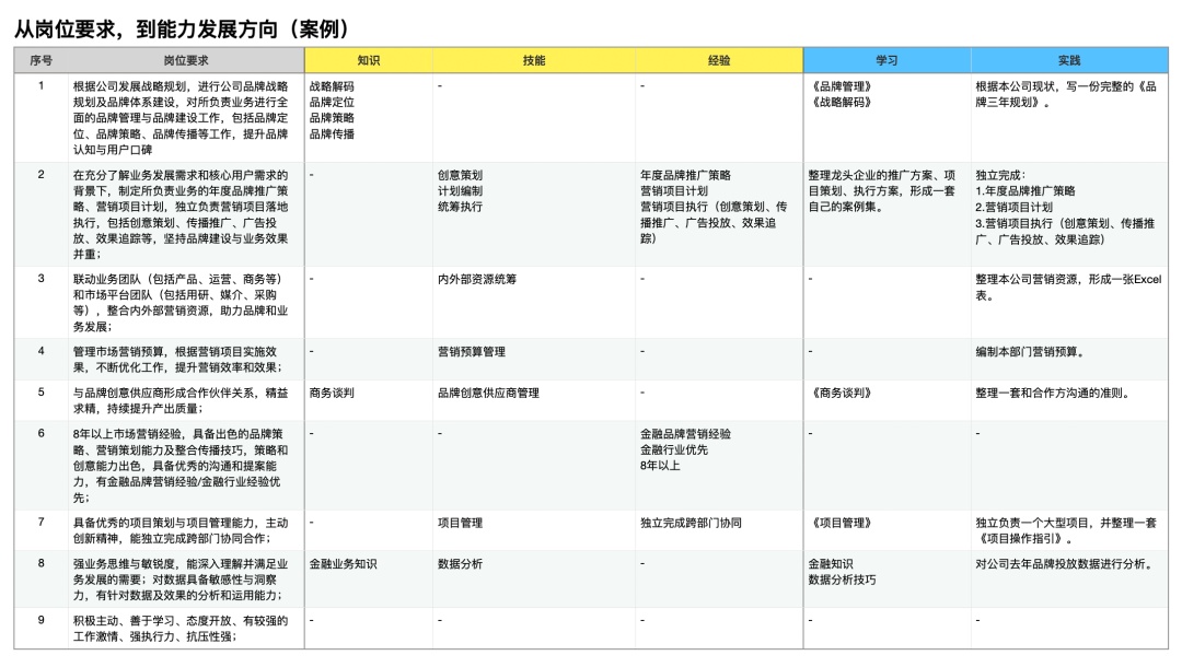 1.根据岗位要求明确要提升的知识和技能分别是什么。