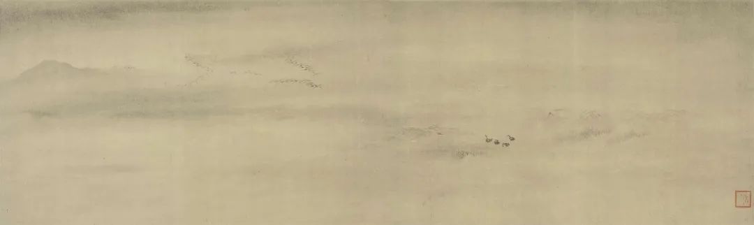 这是“潇湘八景”之二——平沙落雁,牧溪依然采用横幅的宽阔画面。