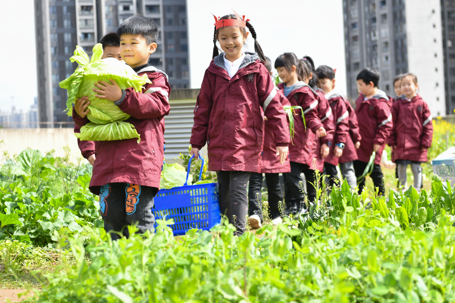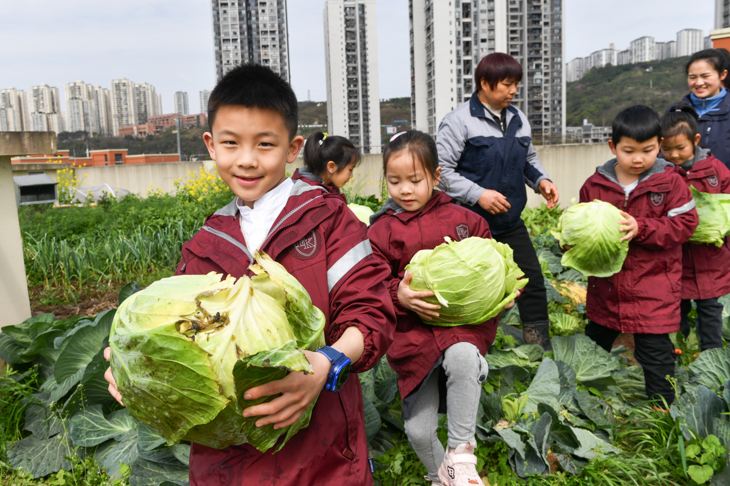“去年初夏,学校利用校园里的空地和楼顶开辟了20余亩的菜园,作为学生的劳动实践场地,老师指导学生种蔬菜并进行田间管理。”两江新区童心青禾小学校长秦波介绍,学校将采摘蔬菜、画自然笔记、欣赏油菜花作为新学期第一堂课,培养孩子们的劳动能力和美育素养。