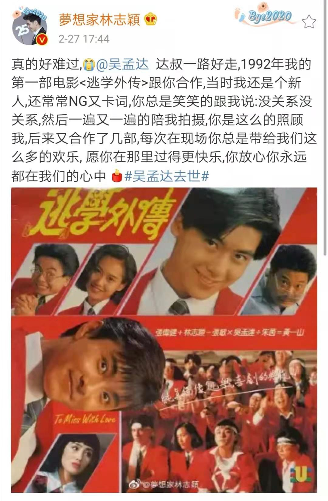 吴孟达电影生涯数十年,曾凭借《赌圣》《逃学威龙》等电影获香港电影金像奖最佳男配角提名,并凭借《天若有情》夺得1991年的香港金像奖最佳男配角,演技及影响力在业界备受肯定。吴孟达去世后,多位名人为他发文表达哀思:
