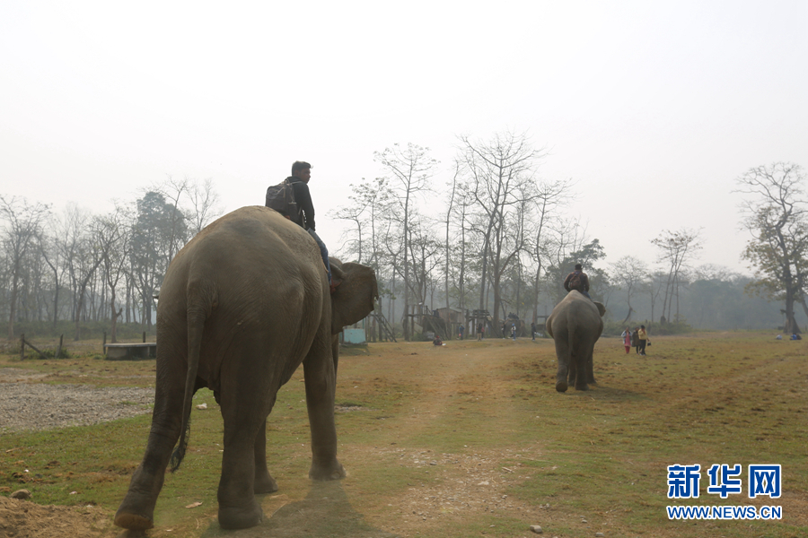 2月中旬,尼泊尔南部的奇特旺国家森林公园,驮着象夫的大象。虽然一直有动物保护者反对,但这种当地繁殖和驯化的大象的确成为了受欢迎的奇特旺旅游招牌。(记者唐薇 摄)