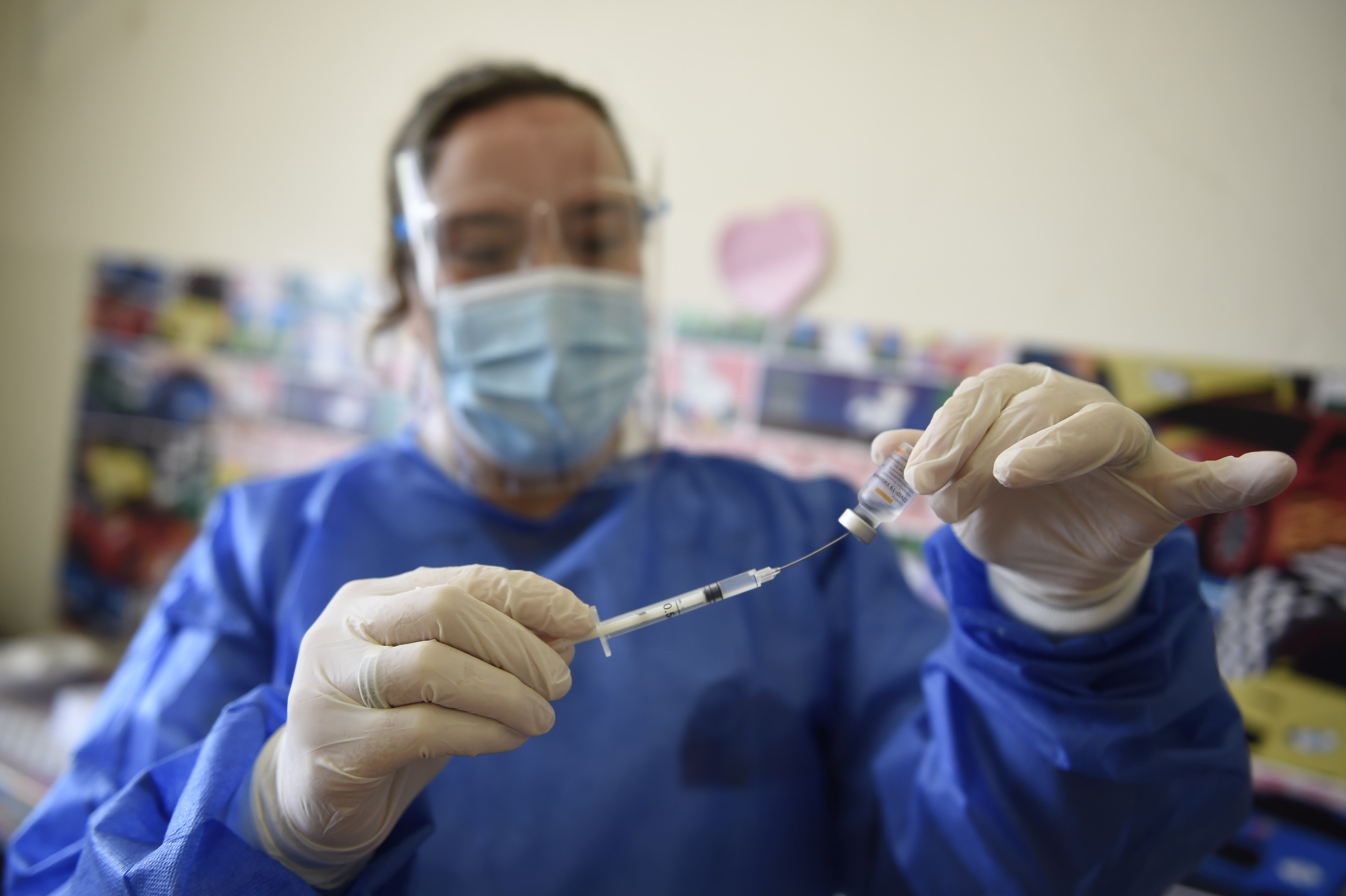 3月1日,医务工作者在乌拉圭蒙得维的亚准备注射中国科兴新冠疫苗。(新华社发,尼古拉斯·塞拉亚摄)