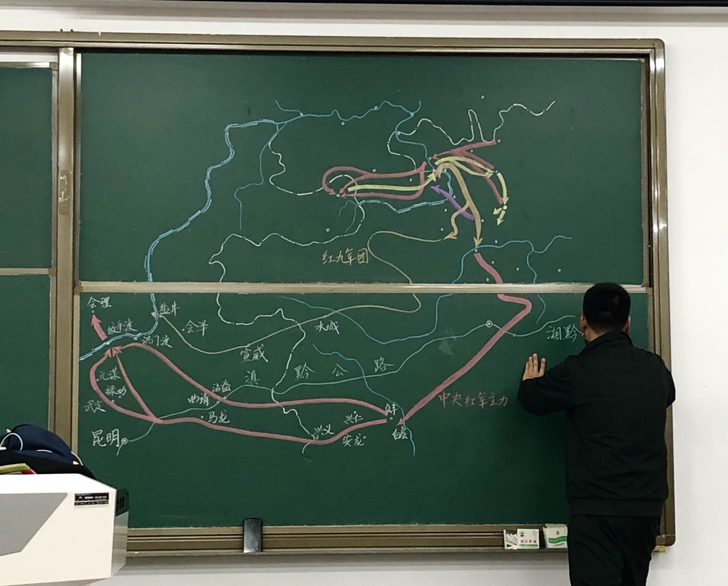 天津大学教师在党史课上绘出四渡赤水示意图。 受访者供图