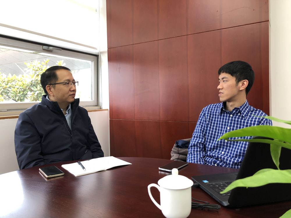 2月28日,陈杲(右)在中科大接受新华社记者专访。新华社记者金剑摄