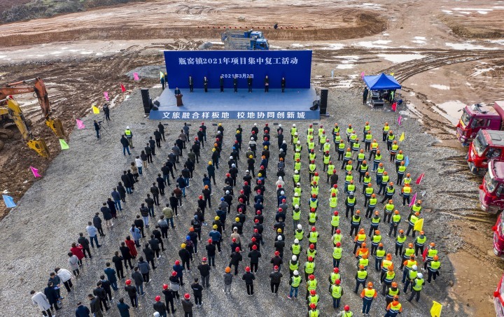 3月2日上午,良渚申遗鸽宝山安置点施工现场机声隆隆、车来车往,杭州市余杭区瓶窑镇重大项目集中复工仪式在这里举行。至此,中法航空大学、鼎盛创新型产业项目、瓶窑镇良渚文化风情线沿线提升项目等51个续建项目已全部复工,吹响了全镇项目推进的集结号。