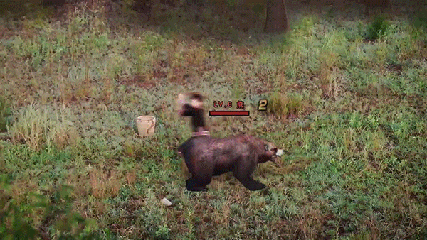 点击选项“攻击野猪”,玩家操控的拉祜族女猎人使出一套华丽的“滑铲”“回旋踢”,不仅战胜了野猪,还能收获丰富的战利品;