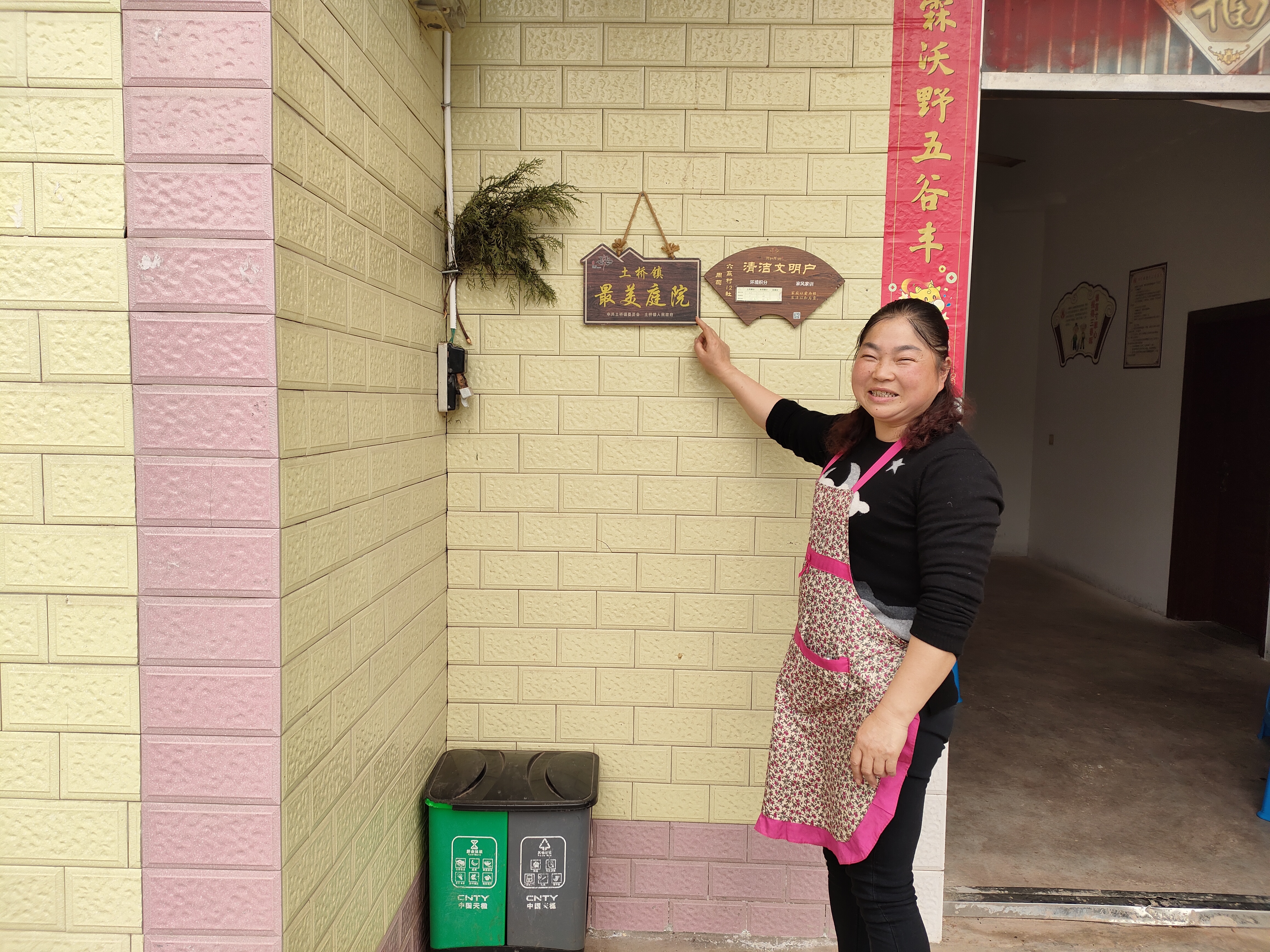 在重庆铜梁区土桥镇六赢村,村民周菊把“最美庭院”的标牌,挂在了自家房前最显眼的地方。
