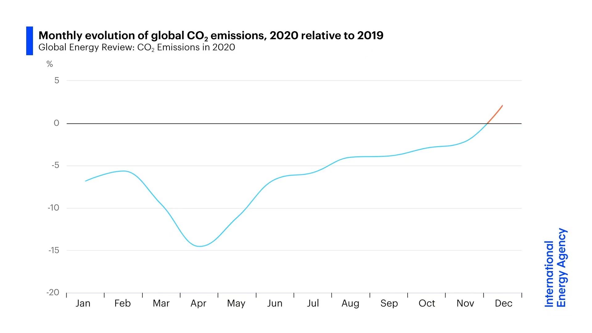 国际能源署署长比罗尔 (Fatih Birol) 表示:“临近去年年底,全球碳排放出现反弹,是一个明显的警告,表明在加速全球向清洁能源转型方面,我们做得还不够。”他还表示,2021年是气候行动的关键,如果当前对今年全球经济反弹的预期得到证实,而世界主要经济体不采取重大政策调整,2021年全球排放量会进一步增加。