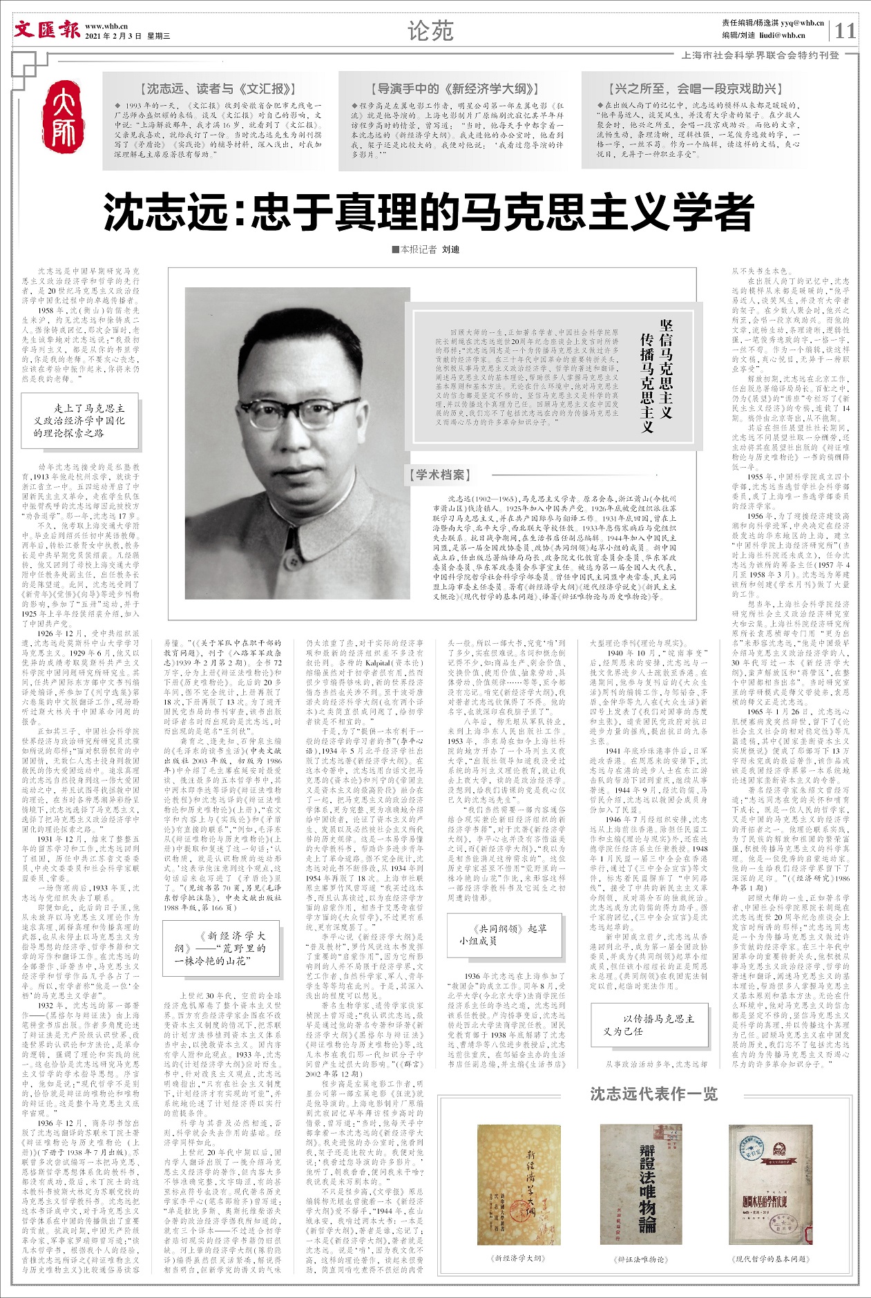即便如此,此后的日子里,他从未放弃以马克思主义理论作为追求真理、阐释真理和传播真理的武器,也从未停止以马克思主义为指导思想的经济学、哲学书籍和文章的写作和翻译工作。在沈志远的全部著作、译著当中,马克思主义经济学和哲学作品几乎各占了一半。所以,有学者称“他是一位‘全栖’的马克思主义学者”。