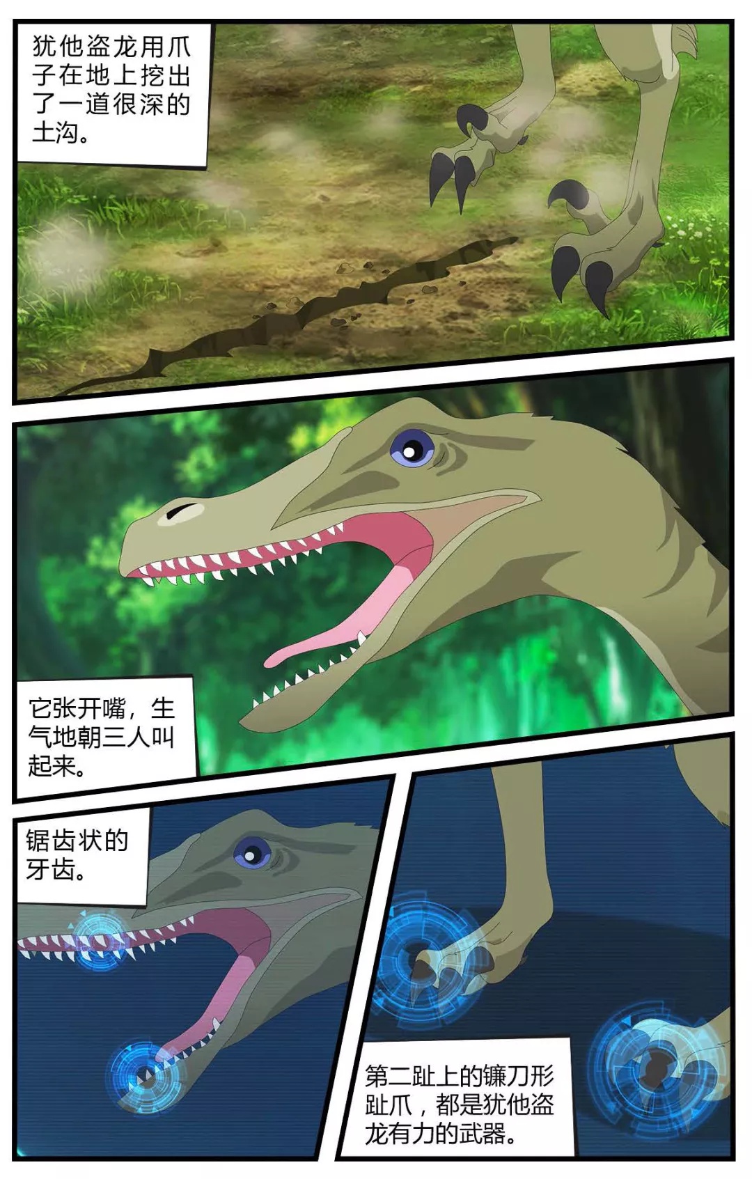 犹他盗龙主要生存于白垩纪早期,是驰龙科最大型的恐龙,也是平原上的小型肉食性恐龙,个子高、体重轻,眼睛大而向前,具有立体视觉,视力堪比猫头鹰;颈部细长,反应极快。锯齿状的牙齿、镰刀形的趾爪,第二趾上巨大的钩爪,这些都是它的武器。
