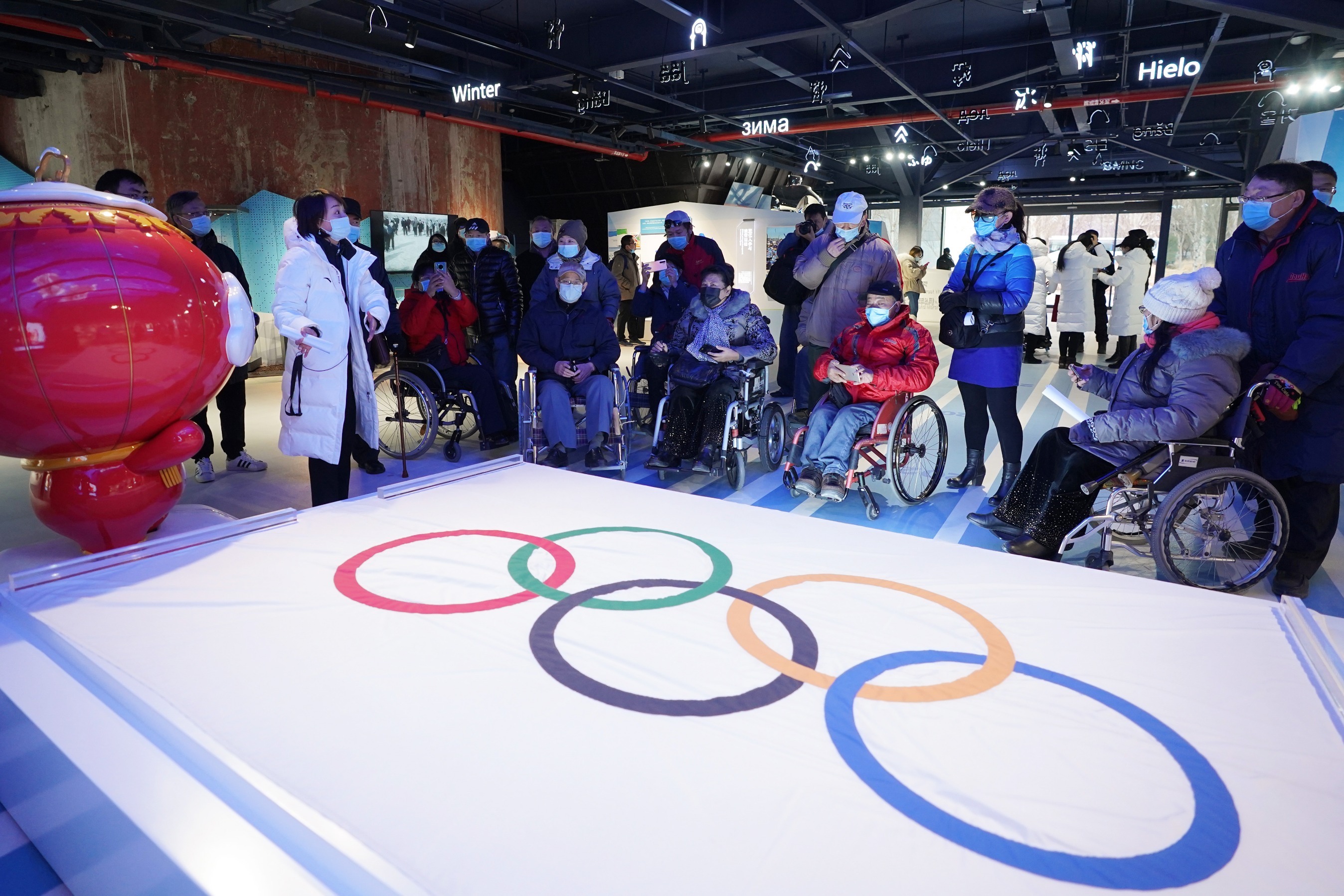 2020年12月2日,2020年国际残疾人日暨第五届中国残疾人冰雪运动季活动在北京冬奥组委举办,来自北京市基层社区的残疾人及亲属参观北京冬奥会和冬残奥会展示中心。新华社记者鞠焕宗摄
