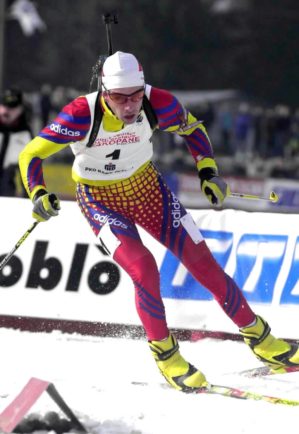 2001年2月17日,在世界大学生冬季运动会上,波兰选手西科拉·托马斯获得冬季两项男子12.5公里追逐赛冠军。新华社记者蒋林摄