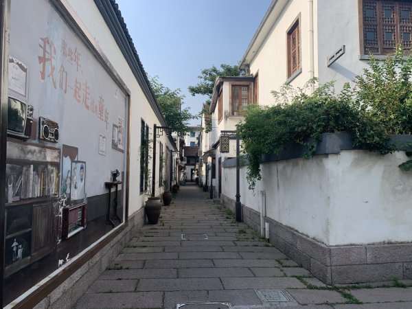 余不弄,青瓦白墙、石廊木檐,里弄两侧是典型的明清风格古建筑。