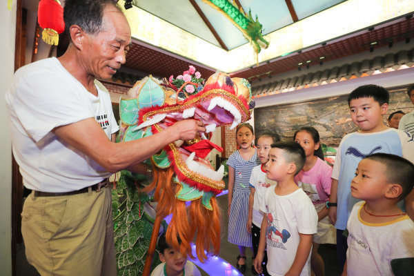 乾元镇非遗馆内,老艺人展示龙灯文化。摄影王正