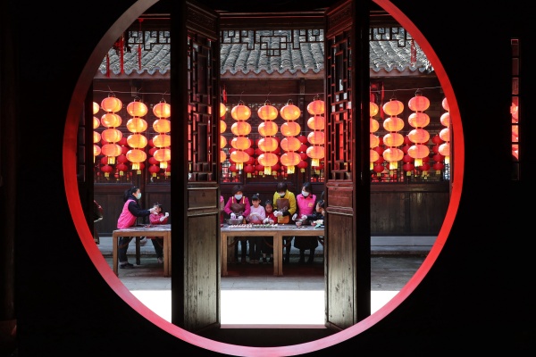 2月21日,乾元镇余不弄,社区居民、志愿者和孩子们一起包汤圆。拍友谢尚国摄
