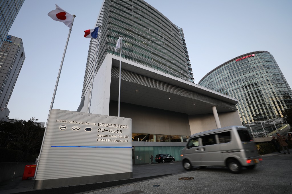 2019年1月7日,一辆汽车驶入日本横滨日产汽车公司总部。(新华社记者杜潇逸摄)