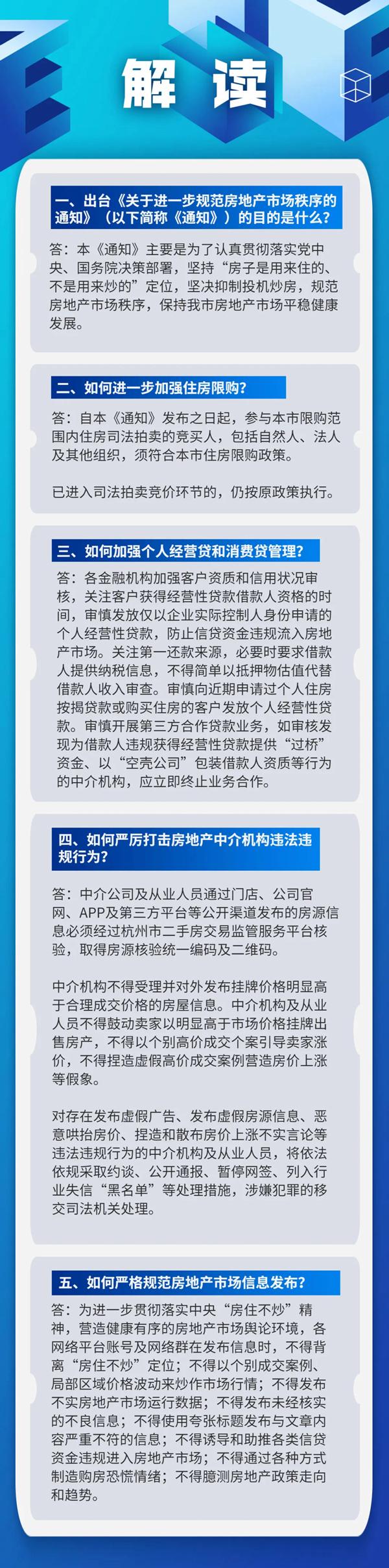 为认真贯彻落实党中央、国务院决策部署,坚持“房子是用来住的、不是用来炒的”定位,今天(3日),浙江杭州市房地产市场平稳健康发展领导小组办公室发布《关于进一步规范房地产市场秩序的通知》(以下简称《通知》),规范房地产市场秩序,促进杭州市房地产市场平稳健康发展。