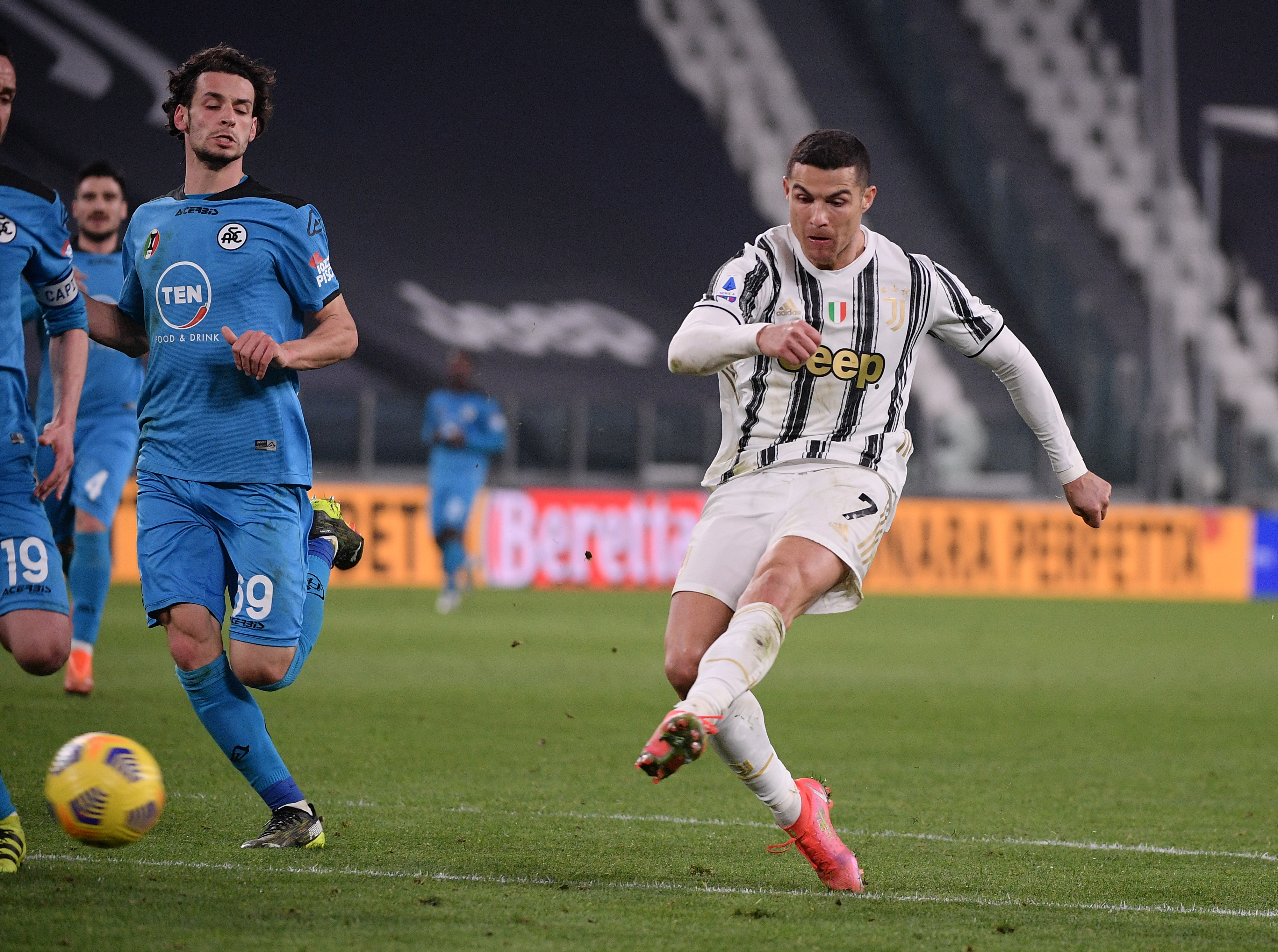 斯佩齐亚在比赛最后20分钟倾巢而出,尤文则在防守的同时,伺机制造极为危险的反击。第88分钟的一次防反中,本坦库尔为C罗送出助攻,后者禁区边缘推射破门,为尤文锁定胜局。补时期间,尤文球员德米拉尔禁区内犯规送点,不过门将什琴斯尼扑出了斯佩齐亚的点球,助尤文3:0完胜。