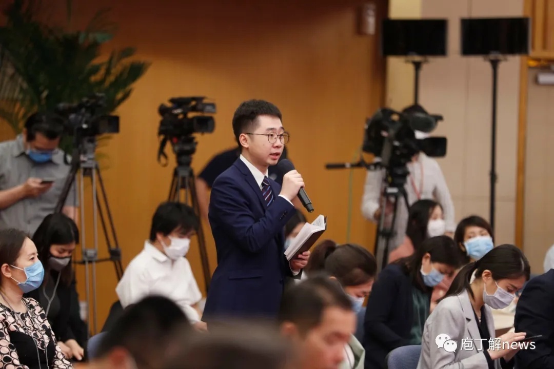 ▲2020年5月24日,十三届全国人大三次会议在北京人民大会堂新闻发布厅举行记者会,邀请中国国务委员兼外交部长王毅就中国外交政策和对外关系回答中外记者提问。图为中新社记者黄钰钦在梅地亚中心多功能厅提问。中新社记者 韩海丹 摄