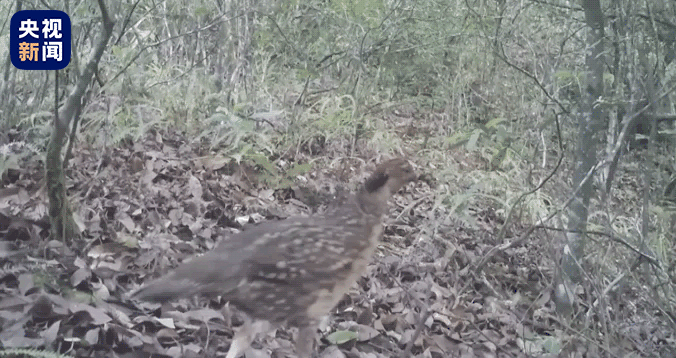 从画面中可以看到,红外相机共拍摄到四只黄腹角雉,前面出现的两只雌鸟羽毛呈棕褐色,显得有些胆小,它们面对相机时显得小心翼翼,不一会儿就走出镜头,另外两只雄性黄腹角雉则头顶深橙红色羽冠,羽毛也更加艳丽,不时抬头四处张望,好像是在寻找食物。