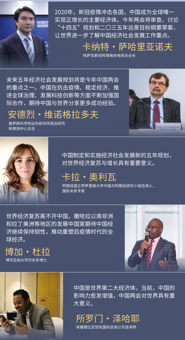 新华社北京3月3日电 综合新华社驻外记者报道:2021年是中国共产党成立100周年,也是实施“十四五”规划、开启全面建设社会主义现代化国家新征程的第一年。在历史的交汇点上,即将召开的全国两会备受世界瞩目。多国人士纷纷表示,今年两会意义重大,期待中国展现的未来发展蓝图向世界传递更多积极信号,为全球发展带来更多利好。