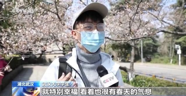 武汉大学 学生:这段时间给我们最大的一个感觉就是我们都被樱花包围着了,就特别幸福,看着也很有春天的气息。