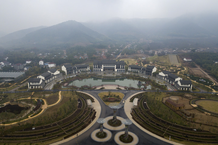 俯瞰湖州市吴兴区原乡小镇景区(12月14日无人机拍摄)。新华社记者黄宗治摄